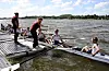 Während die Verantwortlichen im Regattabüro am Sonnabend daher alle Hände voll zu tun haben – mal treibt ein Anlegesteg ab, mal muss ein Rennen verschoben werden –, fahren die Athletinnen und Athletin auf dem Damm bei strahlendem Sonnenschein einen Sieg nach dem nächsten ein.