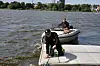 Als sich der Landesteg aufgrund des starken Windes kurzzeitig verabschiedete, leistete einer der Rettungssanitäter Hilfe.