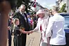Es war der letzte offizielle Empfang für Königin Margrethe: Die Monarchin wird im Juli 2023 von einem Blumenmädchen und Bürgermeister Erik Lauritzen willkommen geheißen.