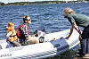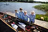 Ein Beiboot begleitet die Ruderboote über das Noor.