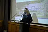 Abteilungsleiterin Ursula Petersen illustrierte ihren Vortrag in Tingleff mit Lichtbildern, die auch das Rednerinnenpult beleuchteten.