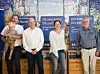 Stephan Kleinschmidt (Schleswigsche Partei), Stefan Seidler, Sybilla Lena Nitsch und Flemming Meyer (Südschleswigscher Wählerverband) präsentieren im Flensborghus ihr gemeinsames Eckpunktepapier, mit dem sie der Grenzregion einen Schub geben wollen.