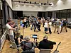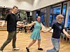 Nach der Tanzstunde sind fast alle der jungen Frauen und Männer ganz schön außer Puste. Sie schnappen sich eine Flasche mit einem Getränk, gehen vor die Tür, setzen sich auf eine Bank, kommen wieder zu Atem. Sascha Holmelund hat nur eine kurze Pause: Sie tanzt auch bei den Älteren mit.