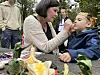 Für das Kindergartenfest hatte Tennas (Mitte) Tante Janni ein Outfit in herbstlichen Farben gewählt. Links im Bild: Lilly.