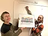 Karen (l.) und Tochter Katrine beim Aufhängen eines der 31 Aquarelle