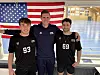 Daniel Eggert (m.) mit Simon Neumaier (l.) und Zachary Greenstein in den Broacker Hallen, wo das Zentrum des Trainingslagers ist.