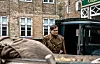 Der Spielfilm „9. April“ mit Pilou Asbæk in der Hauptrolle wurde in Hadersleben gedreht. Hier eine Filmszene vom Mühlenplatz, wo auch einer der Museumsständer steht.