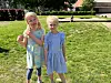 Ene (l.) und Iben fanden die Aktion der ältesten Schülerinnen und Schüler lustig.