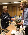 Auch für Pastor Alpen gab es von der Sozialdienstvorsitzenden Christa Lorenzen außer einem kräftigen Händedruck ein kleines Geschenk als Dankeschön.
