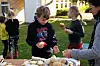 Hier hatten am Vortag Pädagogen und Pädagoginnen zusammen mit den Kindern fast 150 Stück der leckeren Backwaren zubereitet, die nun für jeweils 5 Kronen unter großem Andrang verkauft wurden. Dabei konnten es sich einige nicht verkneifen zu flunkern: „Ich hatte noch keinen!“, hörte man ein paar Mal aus mehreren Kehlen energisch tönen, nicht ohne von den verkaufenden Erwachsenen schmunzelnd gemaßregelt zu werden. „Vergangenes Jahr haben wir 120 Boller gebacken, und es sind welche übrig geblieben. Dieses Jahr haben wir trotzdem zur Sicherheit 30 mehr gemacht, und die sind jetzt schon fast weg“, staunt Pädagogin Inge Wilkens Blasi.