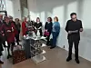 Projektleiter Lars Waldemar begrüßte die vielen Besucher, die sich am Montag im Ausstellungsraum einfanden, Büchereidirektorin Claudia Knauer übersetzte seine Worte ins Deutsche.