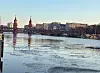 Ein Blick auf die Spree in der Nähe der East Side Gallery mit dekorierten Mauerresten