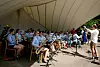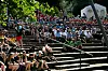 Die Schattenplätze in der Freilichtbühne auf dem Knivsbergfest sind heiß begehrt, als die Freundinnen Isabell Møller Brodersen und Stine Korff auf die Bühne der Mulde treten, um ihre Jugendrede zu halten.