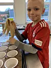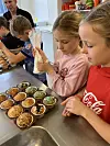 Wer einen professionellen Bäcker als Papa hat und dieser obendrein gern mit Kindern zusammenarbeitet, darüber kann sich sogar eine ganze Schule freuen. In der Küche der Förde-Schule hatten die Eltern John und Lea Madsen Sommer schon vorab alles für die zwölf jungen Künstlerinnen und Künstler vorbereitet. In der Schule sollte die 2b grandios und delikat duftende Muffins mit den schönsten oder auch verrücktesten Dekos schaffen.