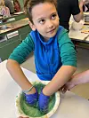 Vitus mit dem farbigen Teig für blaue Muffins