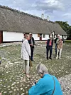 Weiter ging es zum „Jollmands Gaard“, dem ältesten Bauernhof auf Alsen. Bei dem Gebäude handelt es sich um einen sogenannten „Kroggård“, „der wie ein Haken gebaut ist und daher seinen Namen hat“, erzählt Hänel. Hier erwartete die Reisegruppe eine Überraschung, denn als sie dort ankam, stand schon ein anderer Bus dort.