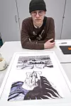 Julius Otzen Kruse mit seinen beiden Bildern, die beim Kunstwettbewerb ausgesucht wurden und jetzt in Vejle zu sehen sind