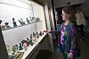 Anne Lildholdt Jensen erklärt weitere Werke ihrer Schülerinnen und Schüler, die im DGN-Gebäude ausgestellt werden.
