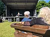 Das Knivsbergfest hat begonnen. Zahlreich strömen am Morgen bei blauem Himmel und strahlendem Sonnenschein die Familien auf den Berg. Bereits vor 9 Uhr ist die Hüpfburg besetzt. Klein und groß stärken sich beim Frühstück für den ereignisreichen Tag. Vor der Open-Air-Bühne fühlen sich die Sitzgelegenheiten.