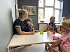 Jana Brommann ist pädagogische Helferin und leistet den gerade erst angekommenen Kindern an diesem Montagmorgen Gesellschaft beim Frühstück.
