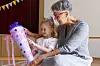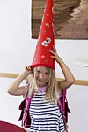 So geht es auch. Die Schultüte passt auf Lærkes Kopf.