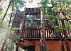 Ein privates Haus mitten im Wald, das mit Petersen-Ziegeln errichtet wurde.