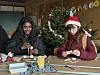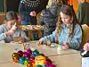 Dakshita (l.) und Zita aus der 5. Klasse beim Basteln von Marshmallow-Schneemännern.