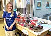 Siebtklässlerin Vigdis vor dem Tisch mit den Gewinnen, die sie und ihre Mitschülerinnen und -schüler gesammelt hatten.