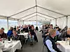 Mittlerweile hatte ein gelber Bus sich neben dem Festzelt positioniert. Das Gefährt kam nicht etwa mit weiteren Gästen, sondern mit dem Essen. Das ließen sich die etwa 70 Gäste bei anregenden Gesprächen schmecken.