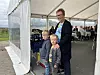 Wilhelm (l.) und Lauritz verfolgten mit ihrer Oma Veronika Bjørn die Ankunft des Busses.