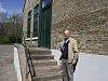 Früher posierte Peter Erichsen auf der Treppe zum Eingang des Hauses für das Schulfoto, knapp 70 Jahre später steht er bei einem Rundgang mit dem „Nordschleswiger“ vor der Treppe Model.