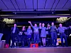 Das Team der Kabarettgruppe Heimatmuseum am Freitagabend auf der Bühne in Sonderburg
