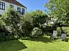 Hinter blühenden Blumen, Sträuchern und unter einem Apfelbaum – die Obstbäume standen schon dort, als das Paar einzog – liegt eine Rasenfläche. Auch hier begrenzen hohe Pflanzen das Grundstück. Zwei Liegestühle stehen auf dem Grün, außerdem ein Strandkorb. „Wir haben verschiedene Apfelsorten: Gravensteiner, Ananasrenette und King Philip“, zählt Gösta Toft auf. Alles alte Sorten, wie er hinzufügt. Einige der Äpfel werden zu Saft verarbeitet, andere wieder sind Kochäpfel „und schmecken wunderbar als Marmelade oder Apfelmus“.