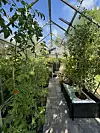 Im Gewächshaus gedeihen unter anderem Gurken und Tomaten.
