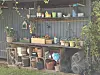Hinter dem Carport hat sich Christa einen Arbeitsplatz eingerichtet.