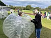 BDN-Ortsvereinsvorsitzende Betty Weinschenck mit einem Bumper-Ball-Probanten während des Schluxifests. Der Ortsverein bot die riesigen Bälle als Aktivität an und erreichte damit insbesondere die jungen Gäste. Diese Altersgruppe will der BDN generell mehr im Fokus haben (Archivfoto).