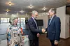 Mathias Knudsen (r.) gratulierte am 31. Oktober Bürgermeister Jørgen Popp Petersen zum 60. Geburtstag, bevor er Popps Frau Elsbeth begrüßte. Nun engagiert sich der ehemalige Venstre-Mann bei der SP.