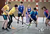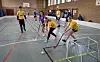 Tosender Lärm schallt aus der Halle. Gelächter, Anfeuerungsrufe und das Klatschen von Kunststoffschlägern, die gegeneinander prallen, dringen immer wieder lautstark nach draußen. In der Halle ist die Hölle los. In einem mit hüfthohen Banden eingerahmten Feld, wie man es vom Eishockey her kennt, kämpfen vier Jungen und vier Mädchen mit Schlägern ausgestattet um eine kleine Plastikkugel, um diese im kleinen gegnerischen Tor unterzubringen. Drumherum sitzt eng an eng eine Schar von Kindern und Jugendlichen, die die Geschehnisse auf dem Spielfeld laut kommentieren.