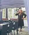 Wie es schon Tradition ist, wenn Anke Christensen bei Veranstaltungen im Haus Quickborn federführend dabei ist, blies die Bollerslebenerin als passionierte Jagdhornbläserin auf der Terrasse kräftig ins Horn – als kleine Sondereinlage.