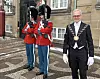 Tonderns Bürgermeister Jørgen Popp Petersen ließ sich vor Amalienborg mit zwei Gardisten ablichten.