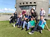 Die Gäste aus Ostholstein, die von Jacob Lorenzen (hinter Reihe, 3 .v. r.) und Ralf Sehstedt (l.), Vertreter der Nordschleswigschen Gemeinde begleitet wurden, bei der alten Sturmflutsäule in Hoyer. In der Mitte Pastorin Dorothea Lindow