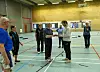 Peter Blume überreicht im Namen der Senioren-Gymnastikgruppe ein Präsent an Jugendverband-Sportlehrer Peter Feies. Obwohl Feies beruflich einen anderen Weg einschlägt, war es kein Abschiedsgeschenk!