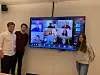 Auf dem Foto „in echt" v. l.: Tobias Klindt und Hans Fedder Kley sowie rechts Katharina Kley. Am Schirm alle weiteren Vorstandsmitglieder. Nicht zu sehen sind Daniel Hoff, Benjamin Krag und Rune Hindrichsen.