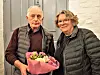 Marion Knutz Kempendorf sprang 2022 drei Monate als Vikarin für Ole und Astrid Kramer im Pfarrbezirk Tingleff ein. Das Foto zeigt den damaligen Kirchenältesten Albert Callesen (l.), der Marion Knutz Kempendorf für die Vertretungszeit dankte (Archivfoto).