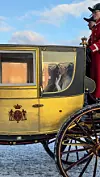Königspaar kommt in goldener Kutsche