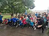 Statt der geplanten 60 Minuten wurde eine halbe Stunde auf der 220 Meter langen Runde auf dem Bolzplatz/Schulhof gelaufen. „Wir mussten bei den Laufzetteln der Kinder umdisponieren und uns eine Lösung mit Listen einfallen lassen, da die Zettel nass wurden“, so die Schulleiterin.