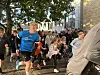 Einigen Verschwitzten reichte es nicht mit dem Wasser von oben, sondern sie tröpfelten aus ihren Trinkflaschen etwas Nass auf ihr erhitztes Haupt.