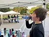 Viertklässler Jonas gönnt sich einen Schluck Wasser aus der Trinkflasche, bevor er weiterläuft.