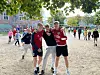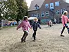 Mit einem geübten Tanz wärmen sich alle auf und stimmen sich auf das sportliche Ereignis ein. Danach geht es nach draußen.