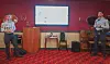 Zwei Polizisten klärten über häufig angewandte Betrugsmaschen auf.